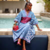 The Regal collection is crafted from intricate fabric, renowned for its bold patterns and rich cultural significance. Designed for the modern woman who embraces both grace and power, this flowing silhouette drapes effortlessly, offering a balance of comfort and refined sophistication. Thoughtfully detailed with signature threaded pockets and a threaded neckline, the regal is a statement of artistry and traditions